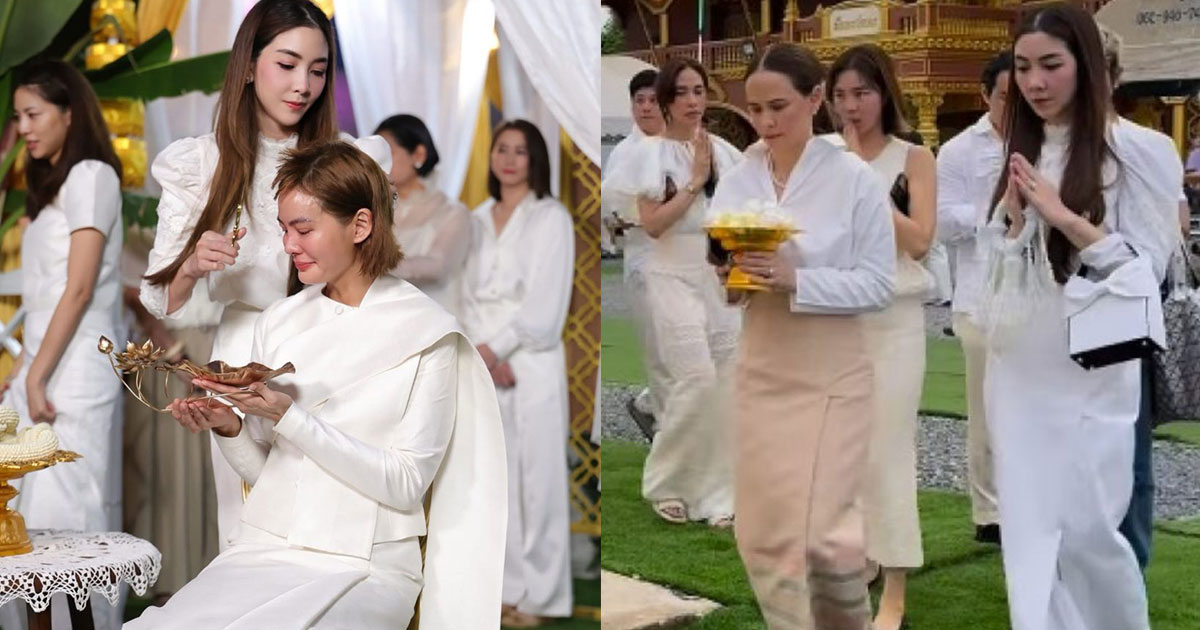 คริส หอวัง, นานา ไรบีนา และ แอน อลิชา ร่วมงานบุญในครั้งนี้ แต่ไร้เงา พอลล่า เทเลอร์ และ เจนสุดา ปานโต เพราะอยู่ต่างประเทศ ไม่สามารถเดินทางมาร่วมพิธีได้ โดย สาววุ้นเส้น โพสต์อินสตาแกรม @vjwoonsen ระบุข้อความว่า “ดีใจกับเพื่อนที่มีวันนี้ อนุโมทนาบุญจ้ะ @janienineeleven”